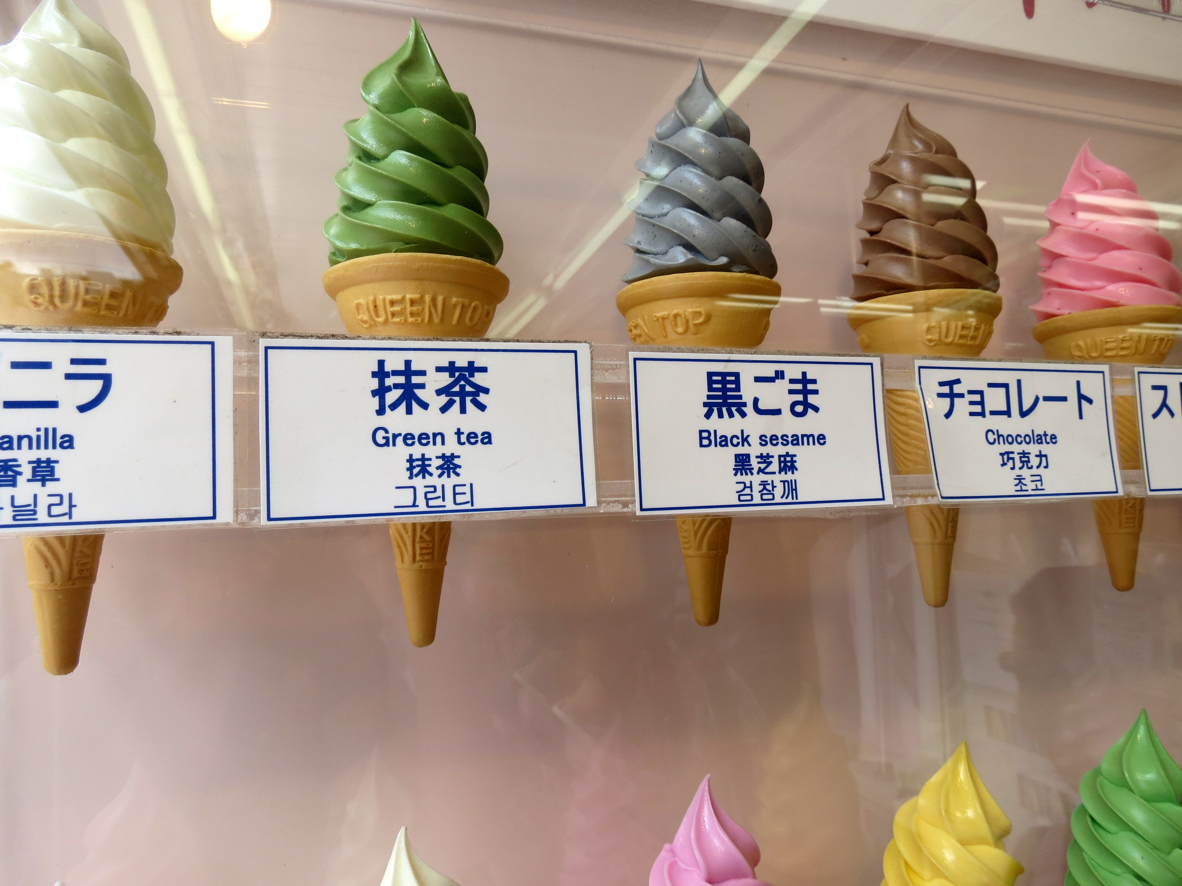 While Japan has the basic ice cream flavors like chocolate (listed first because, well, it’s the best), vanilla and strawberry, they also have very unique (and sometimes very questionable) flavors like: Wasabi, Deep-fried Oyster (just no), Corn (which is actually not bad), Eggplant, Ox Tongue (Why?!!!), Black Sesame, Green Tea (a common and delicious food flavor in Japan), and Ramen. While I have wondered if maybe some of the flavors could be used to get kids to eat foods they don’t like (because while vegetables can sometimes be yucky, ice cream is always delicious!…or is it?…), I’m not sure why anyone would eat some of these flavors otherwise. Octopus or chicken-flavored ice cream anyone?